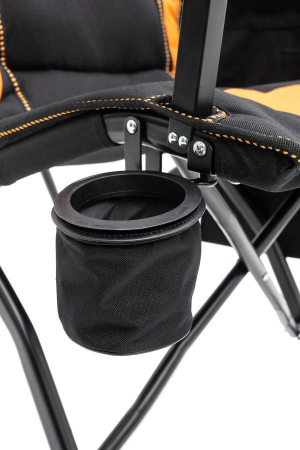 The Vipor XVI is designed to fit every curve, contour, and shape of the body, providing the utmost comfort a camping chair can offer. Features include a storage pocket for devices and personal items that can be attached on either armrest, a retractable drink holder and a large rear storage pocket to keep zipper carry bag close by.